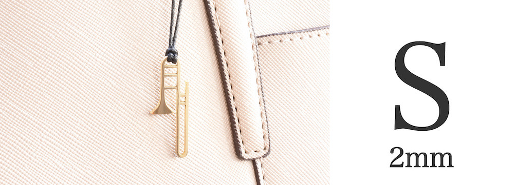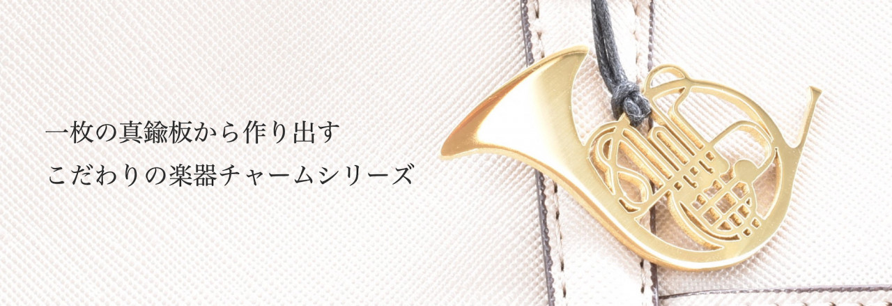 アシュリーの定番アイテムの一つ、真鍮の一枚板を楽器の形状に切り抜いたチャームです。シンプルながらも上品な印象になる様に特徴と捉えながらシルエットをデザインしております。表面は8分ツヤの落ち着いた光沢感が特徴で、真鍮特有の経年変化も楽しみながら末長くお使いお使い頂ける商品です。老若男女問わずお使い頂けるのでプレゼントに丁度良いと多くの方からご好評頂いております。