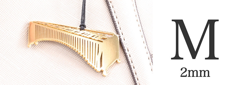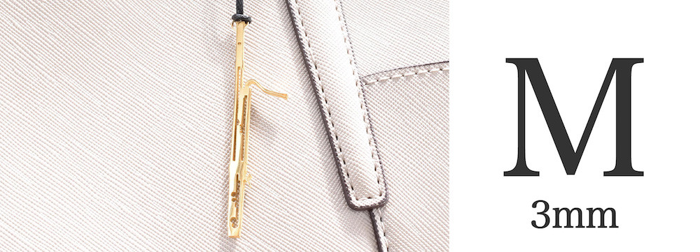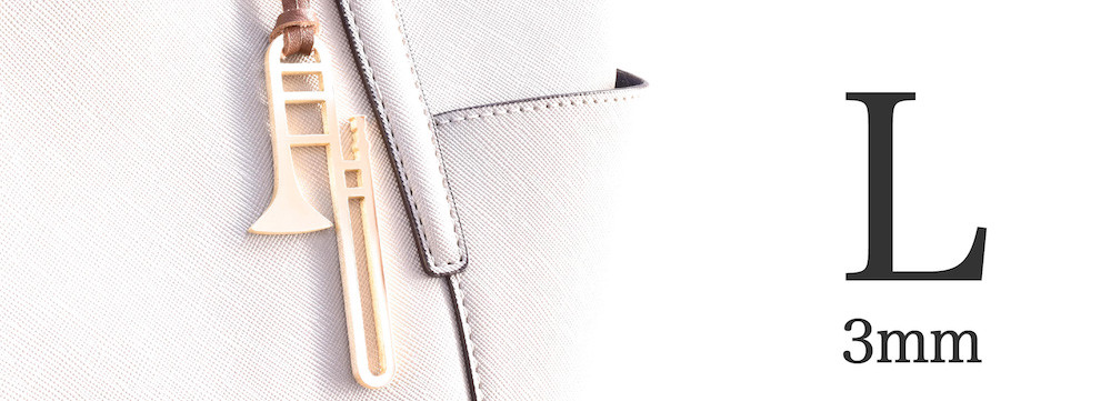 小ぶりなサイズ感のSサイズ。ペンケースやカバンのジップ等に付けると、さりげないアクセントになります。厚みは2mmあるので強度も高いです。