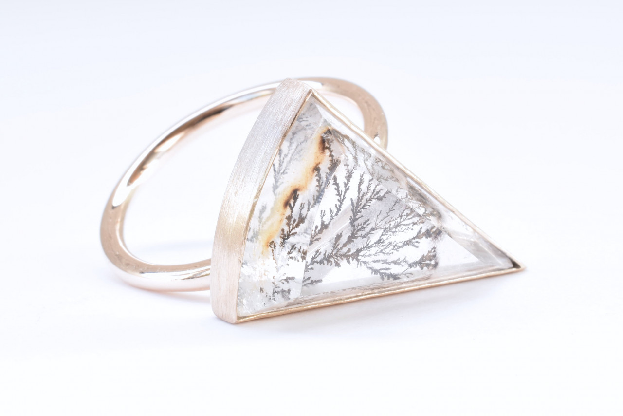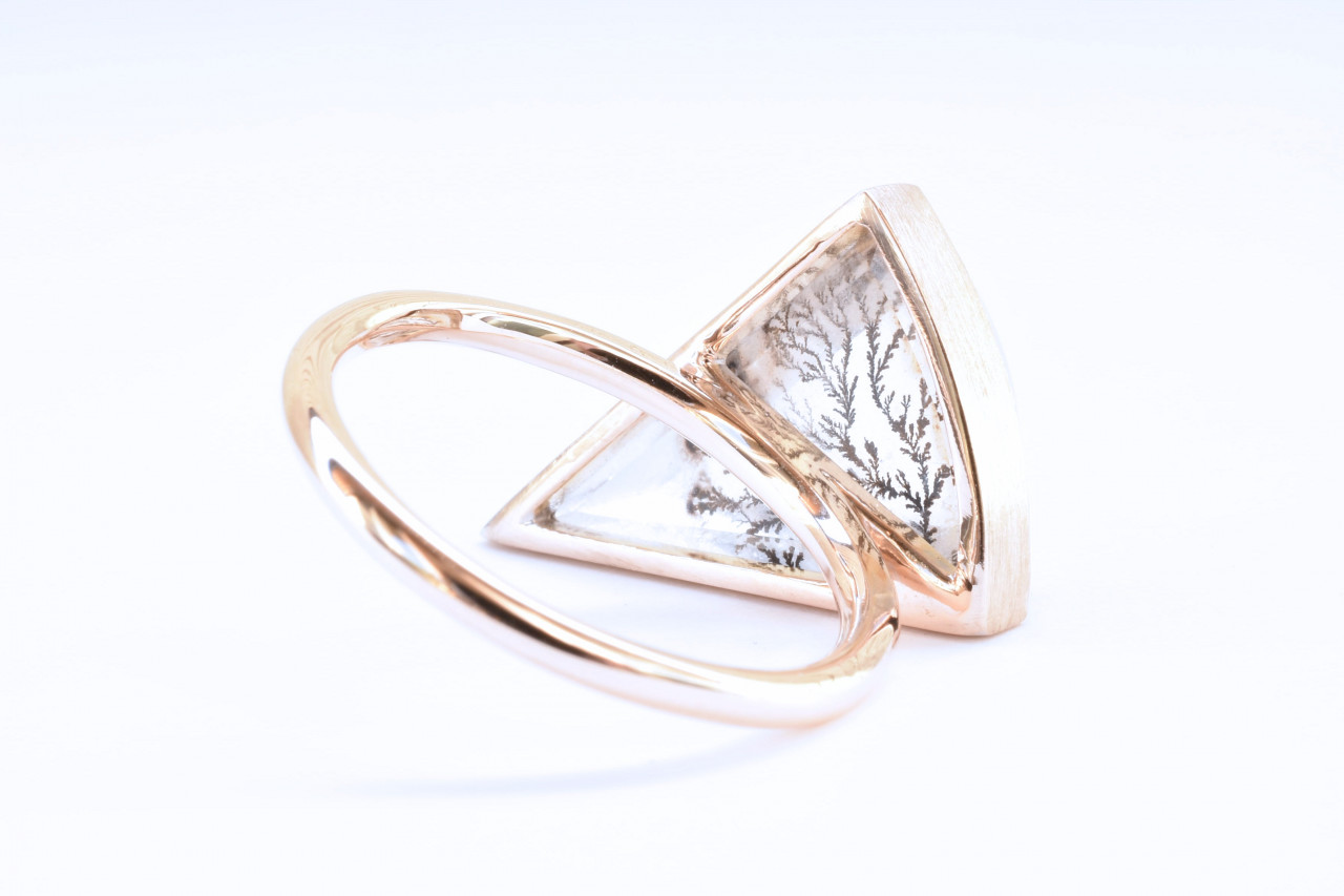 デンドライド特有の結晶体が枠に納まっている感じが、絵画の様でとても美しく仕上がりました。納品のタイミングでカメラマンが撮影した写真も一緒にお送りさせて頂きます。少し変わった宝石を加工するのは弊社の得意分野でもあるので、フルオーダーメイドジュエリーをお考えの方は神戸のジュエリーブランドASHIOURY(アシュリー)をよろしくお願い致します。