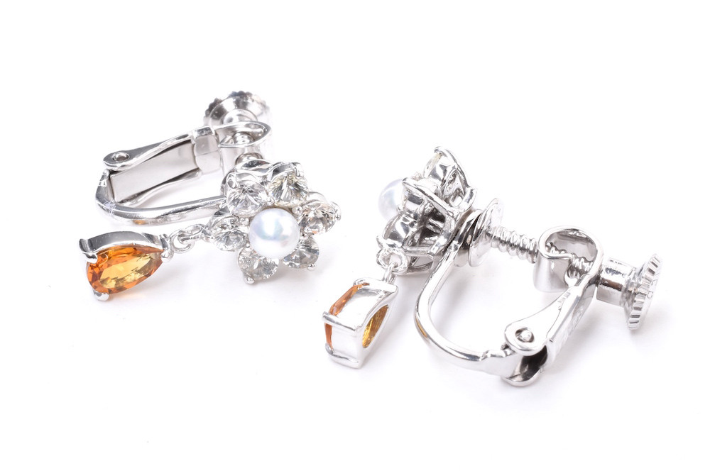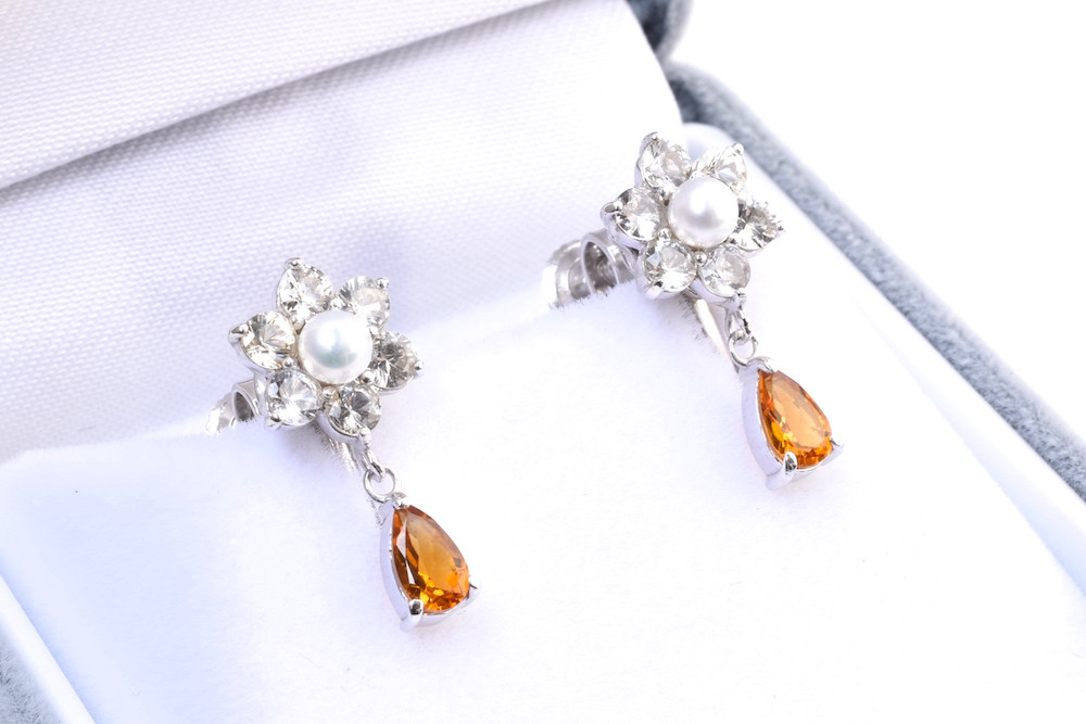 神戸からお届けするシトリンとホワイトサファイアのイヤリング