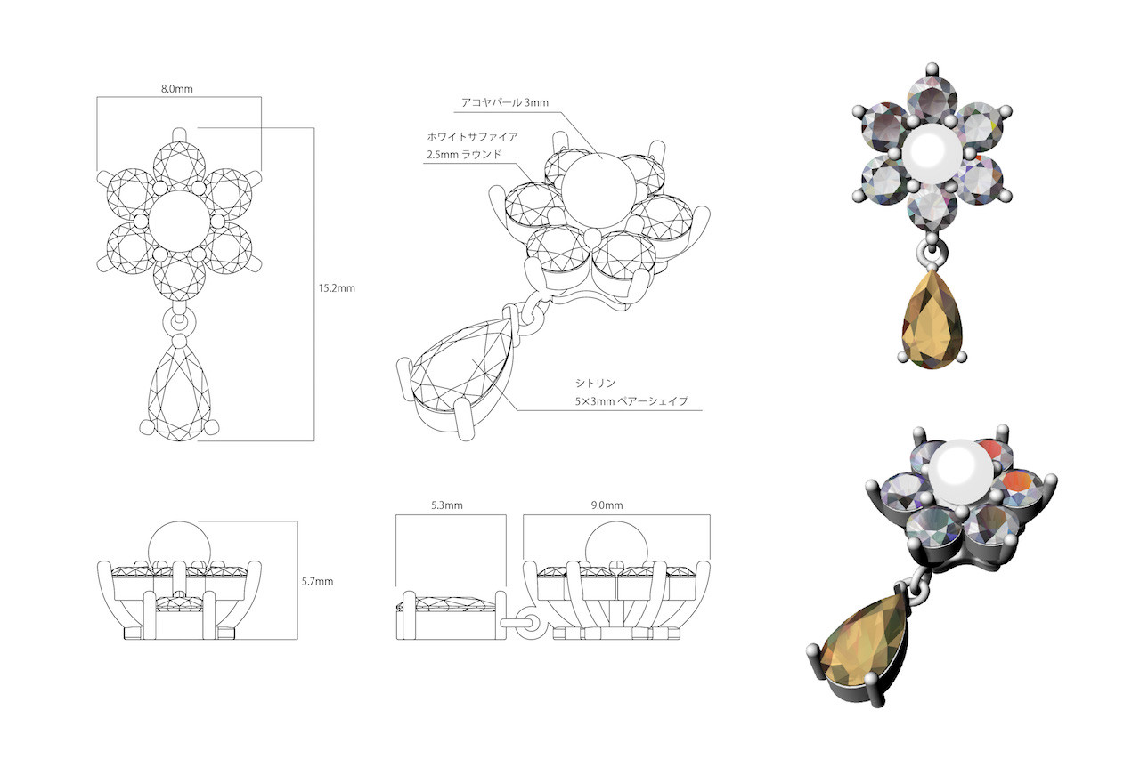 神戸のオーダージュエリー シトリンとホワイトサファイアのイヤリング ご依頼から完成まで