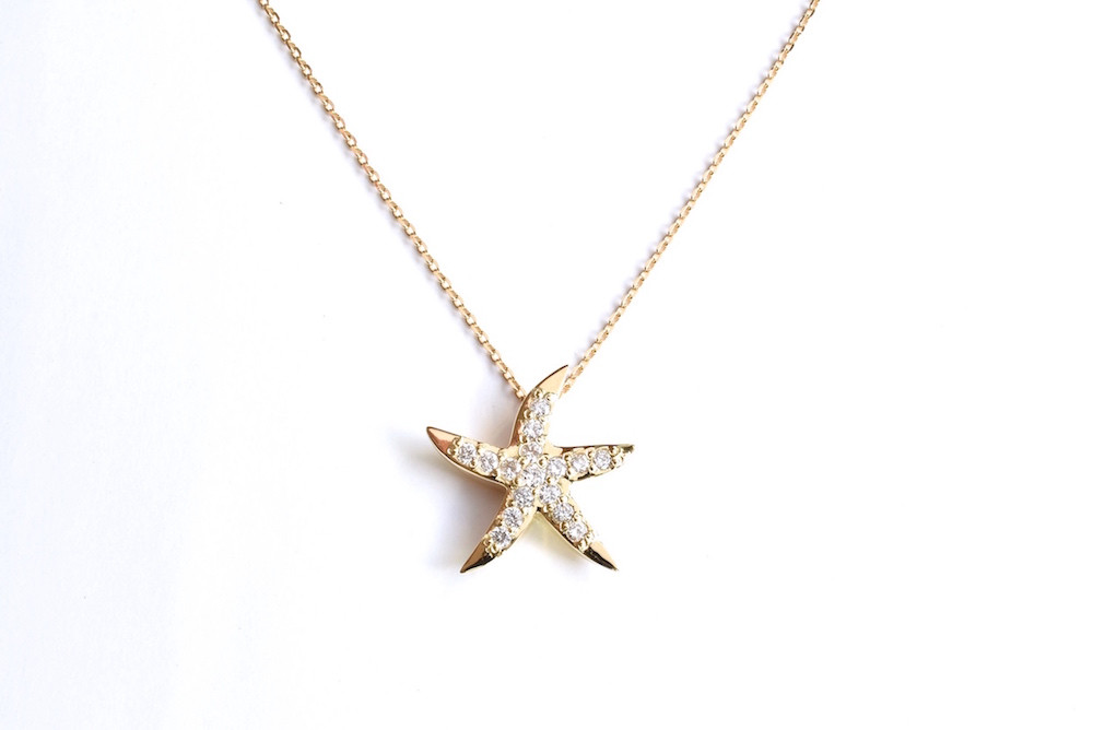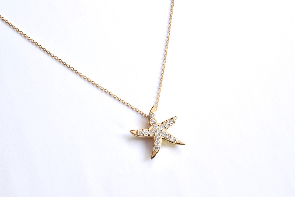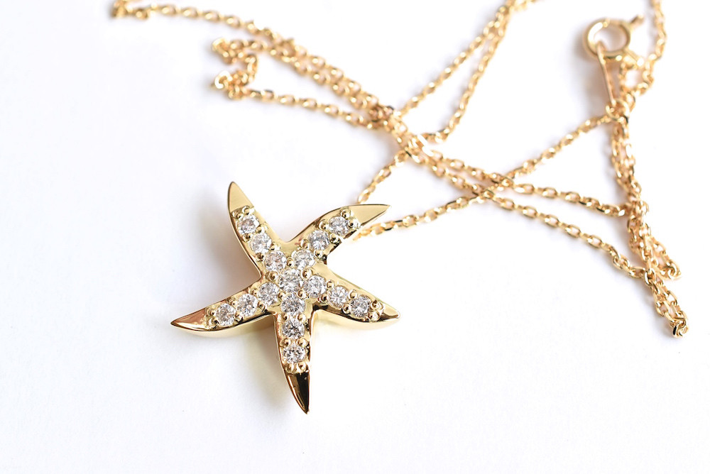 オーダー頂いた金のヒトデペンダントです。とても可愛い見た目ですが、ダイヤを16石敷き詰めた本気のジュエリーです。