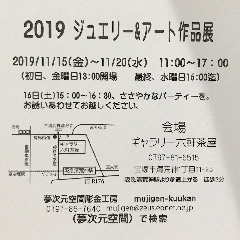 11/20(水) まで清荒神近くのギャラリー六軒茶屋にて合同展示会を行なっております。