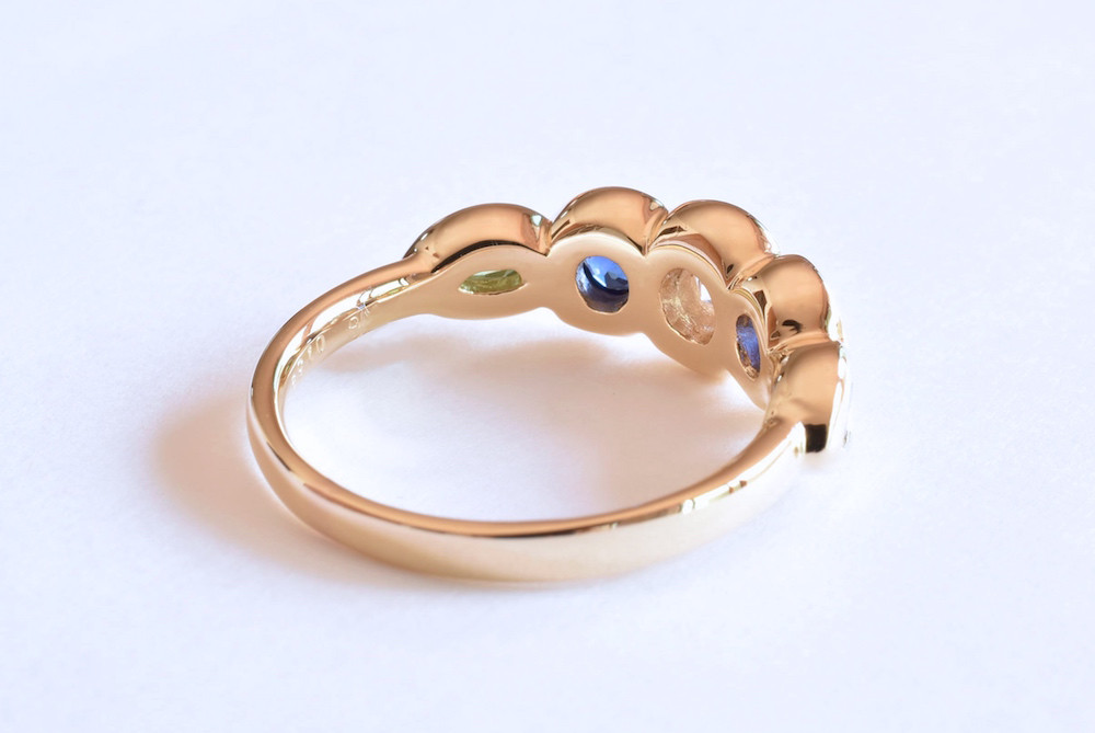 【神戸のオーダージュエリー】K18YG ダイヤモンド 色石 ハーフエタニティーリング ご依頼から完成まで