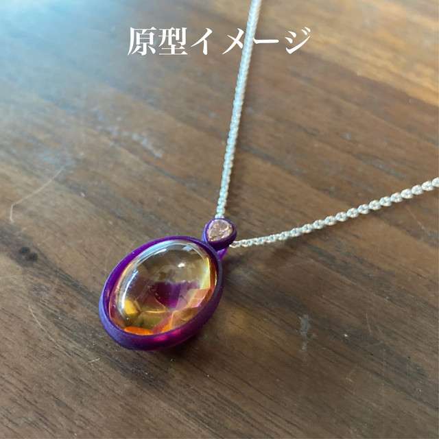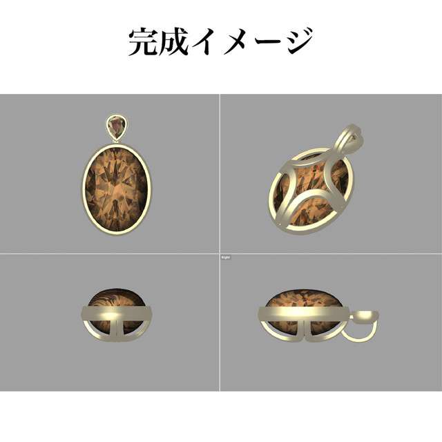 ご支給頂いたシトリンとブラウンダイヤを使い、参考写真の様なイメージに加工させて頂きました。シトリンの表面は丸いカットで、裏面がカッティングされた特殊なルースなので、その面白さを活かす為に裏側から見ても美しいデザインになる様、製作させて頂きました。普段使いがコンセプトとの事でしたので、余計な装飾は施さず、ブラウンの同系色のみでまとめたオンリーワンジュエリーが完成致しました。