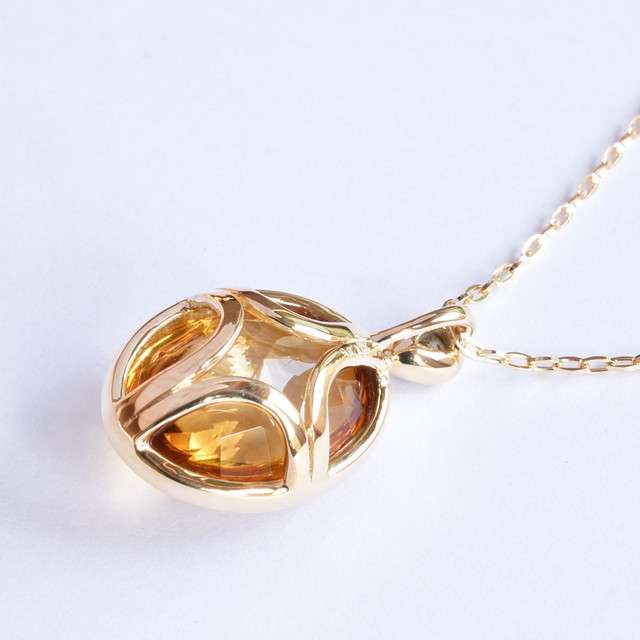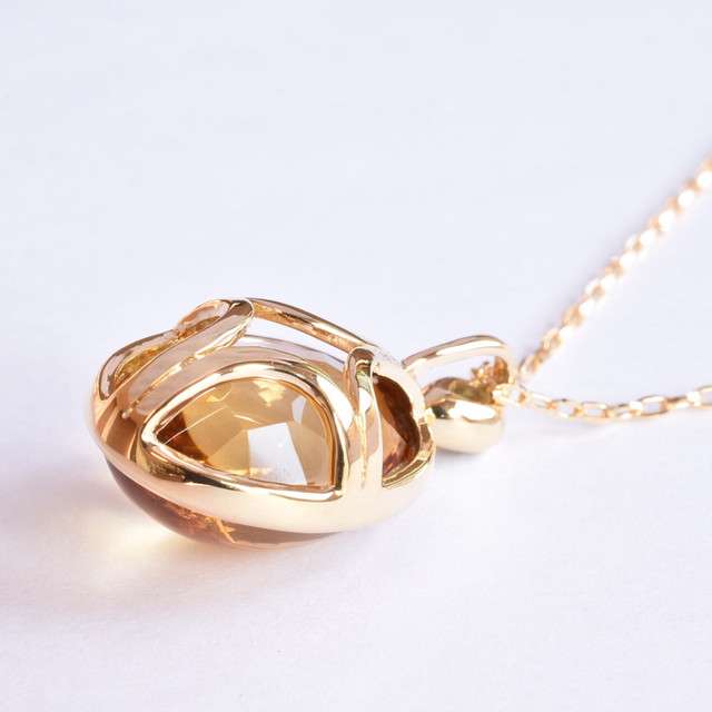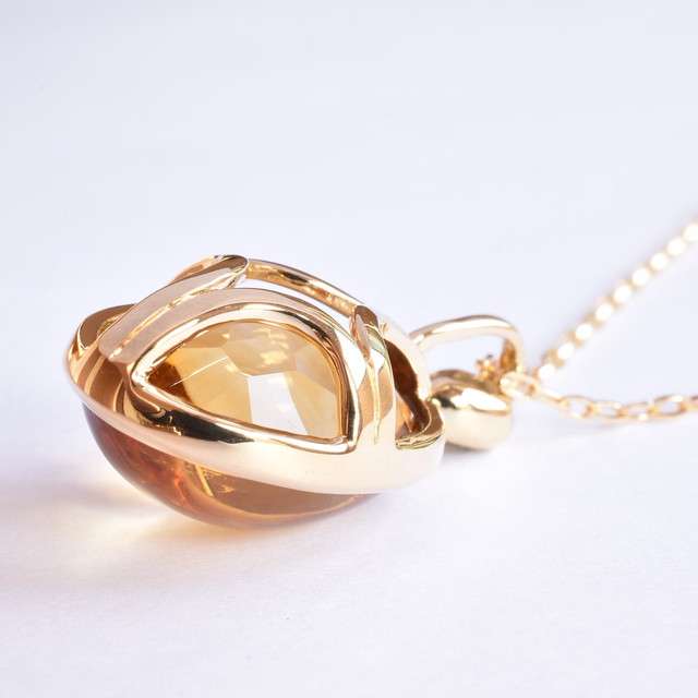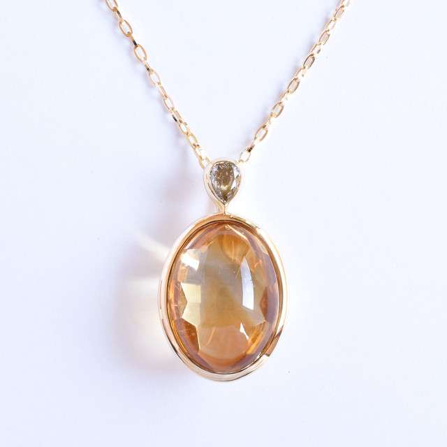 神戸からお届けする K18YG シトリン ブラウンダイヤペンダントトップ