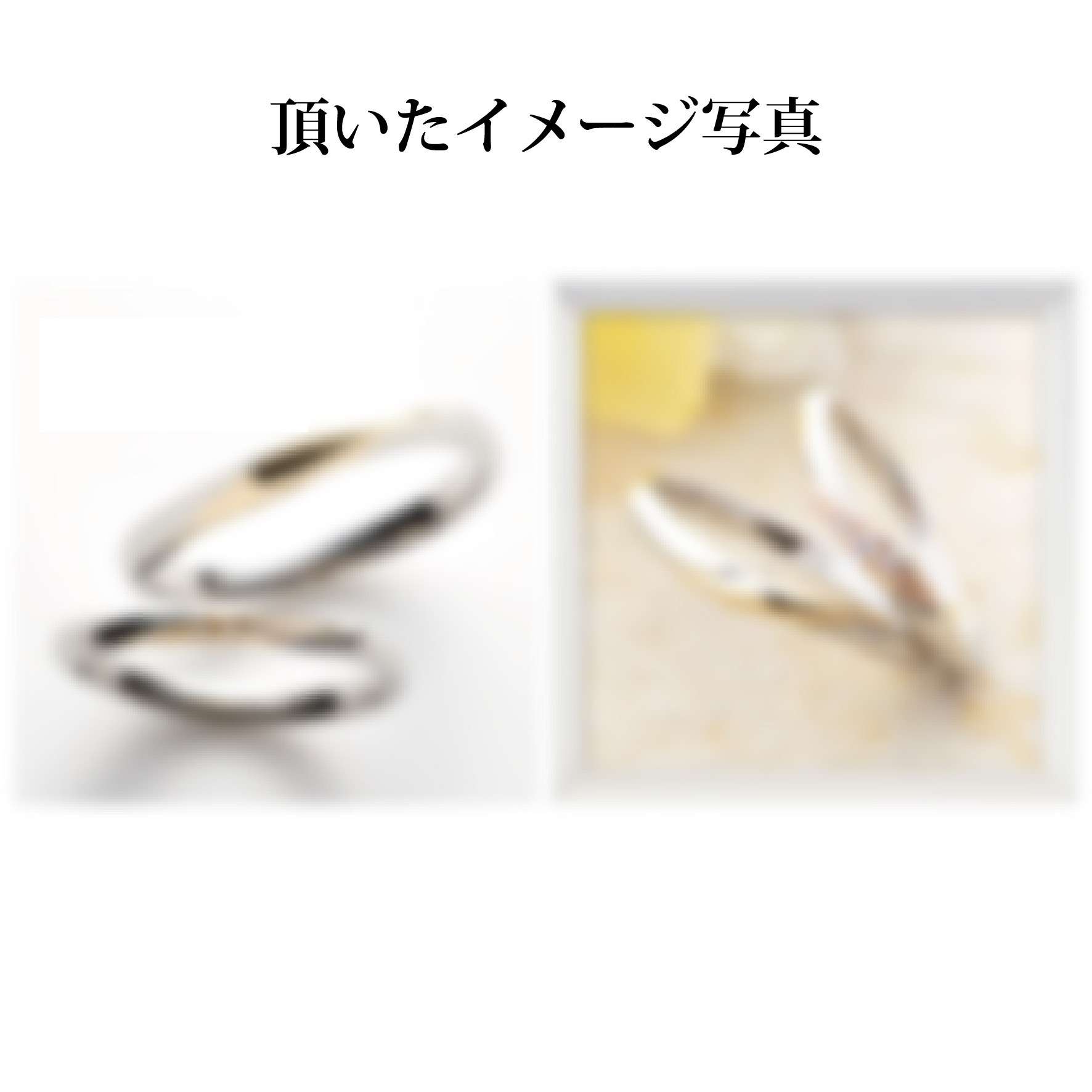 2種類の参考写真を頂き、各々の長所をミックスさせた様なデザインと言う事で今回製作させて頂きました。一見、シンプルな捻りリングに見えますが、ポイントでホワイトゴールドの素地を入れたコンビカラー仕様となっております。一般的に流通しているホワイトゴールドはロジウムメッキ(プラチナメッキ)がコーティングされているので銀色に見えますが、素地は落ち着いたシャンパンゴールドの色合いなので、可愛くなり過ぎず、さりげなく上品に指元を演出するようなリングに仕上がりました。