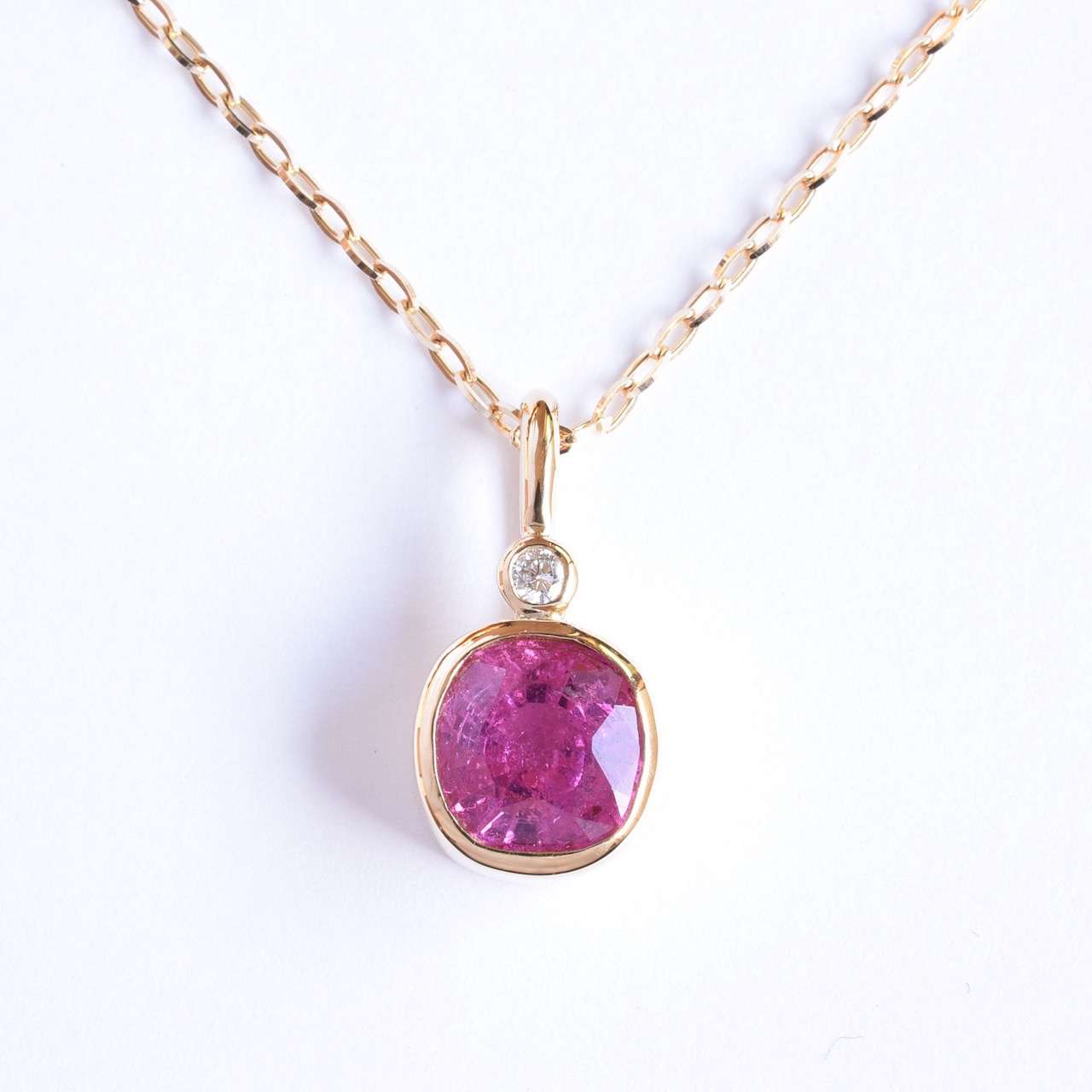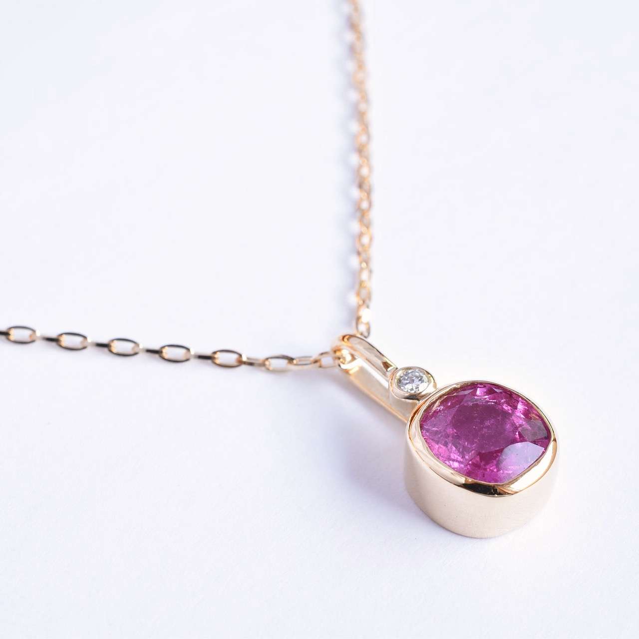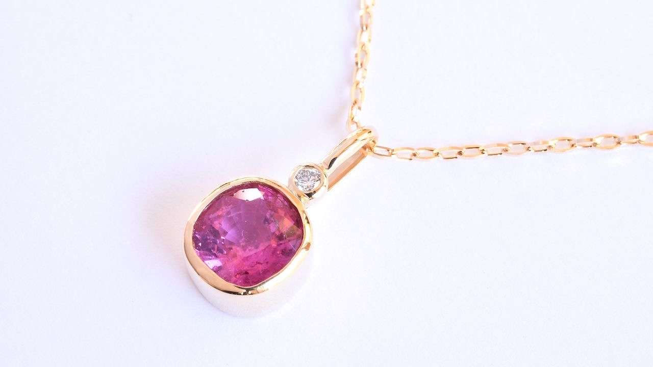 神戸からお届けする K18YG ピンクトルマリン ダイヤモンドペンダント