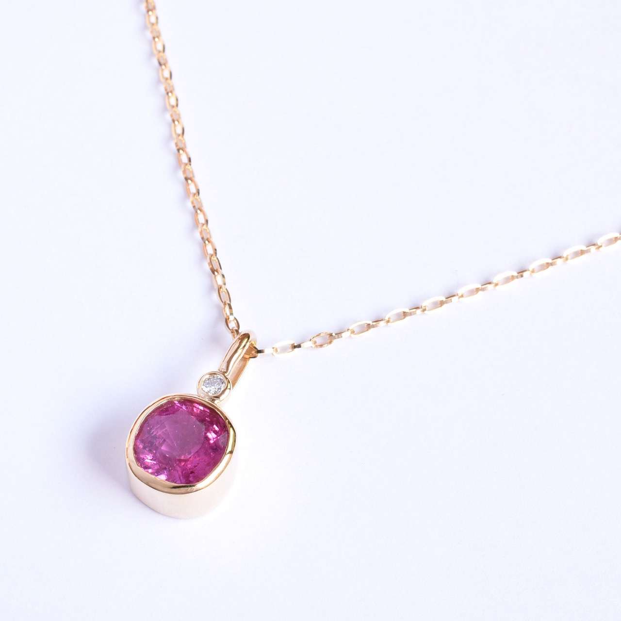 ご支給頂いたピンクトルマリンを一粒ペンダントに加工させて頂きました。宝石と地金の丁度良いバランスを考えながら設計しており、シンプルながらも存在感があり、普段使いしやすいデザインを目指しました。