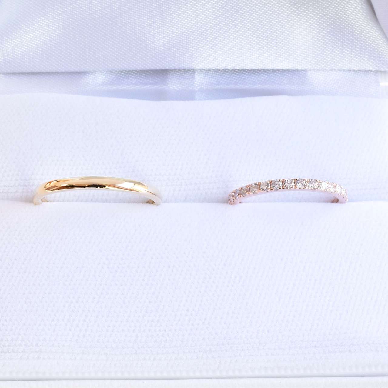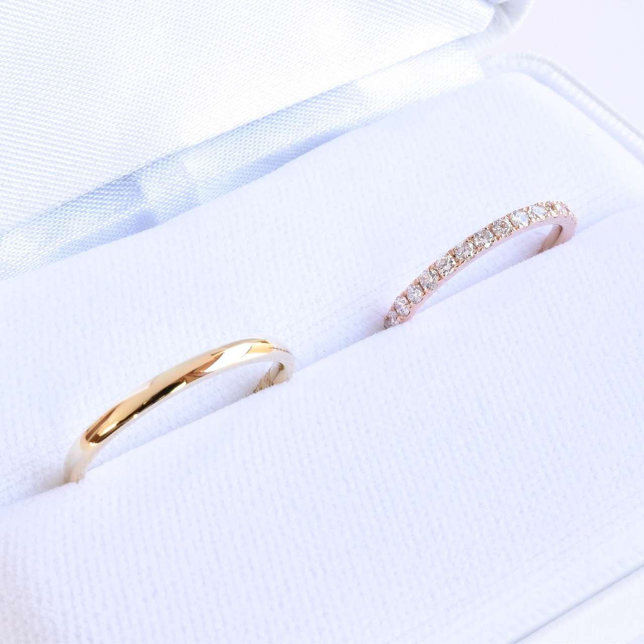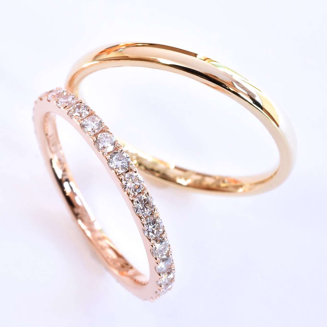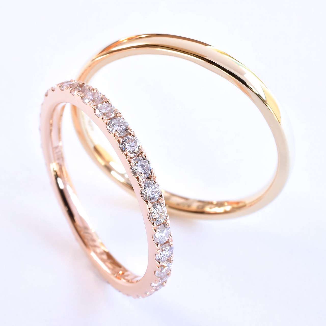 【神戸のオーダージュエリー】K18PGフルエタニティー/K18YG甲丸リング ご依頼から完成まで