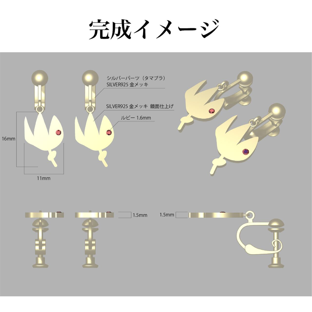 【神戸のオーダージュエリー】SILVER925 チューリップ ルビー イヤリング ご依頼から完成まで