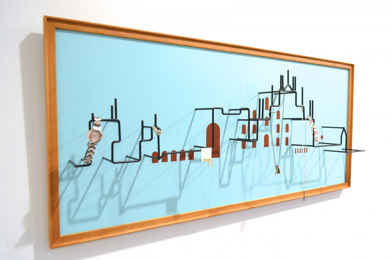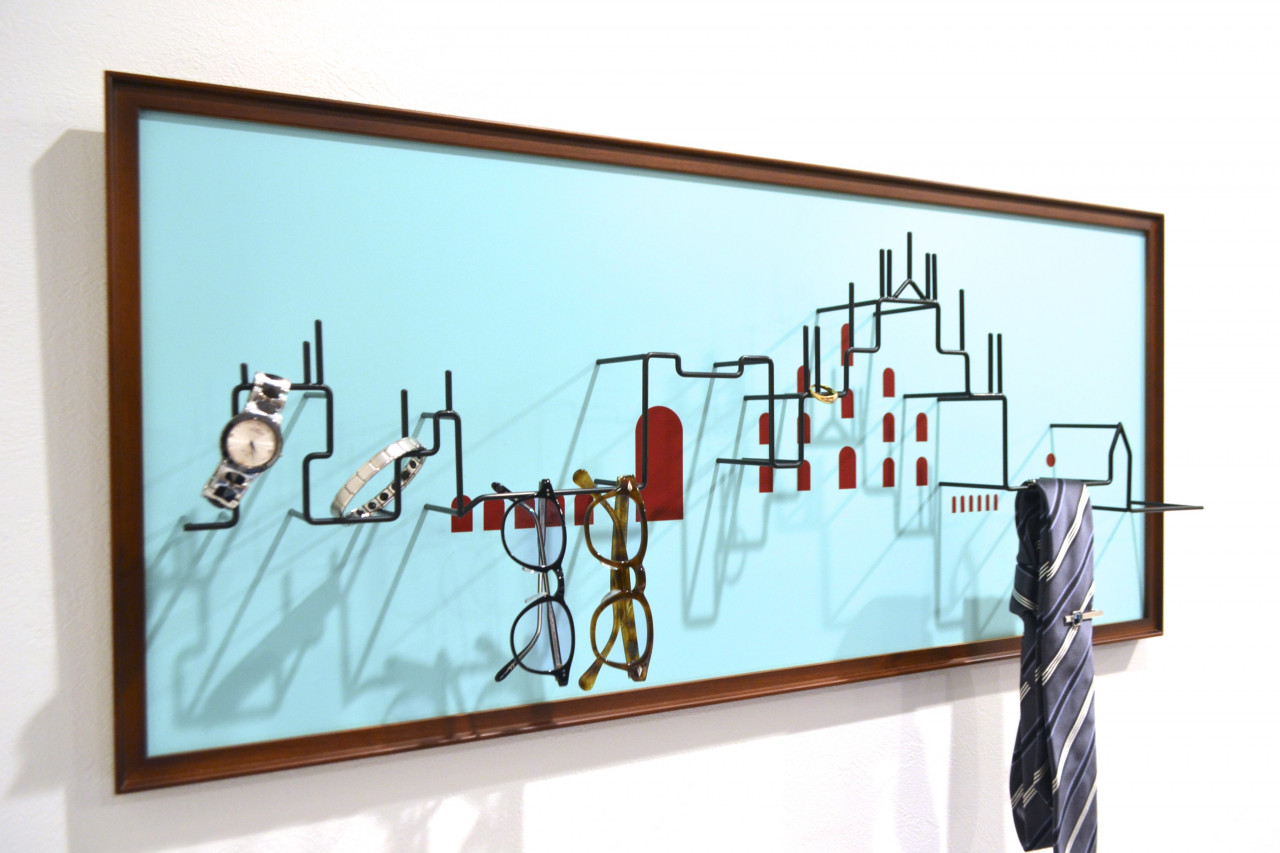 小物をまとめてアートの様に飾るミラノの街並を象ったアクセサリーフックです。指輪、腕時計、メガネなど幅広く掛ける事ができ、部屋の壁や玄関に置けば、いつものアクセサリーが街並に合わせて独創的な雰囲気を作り出します。