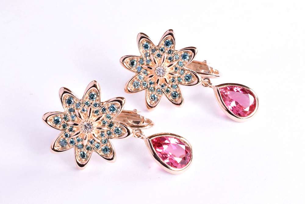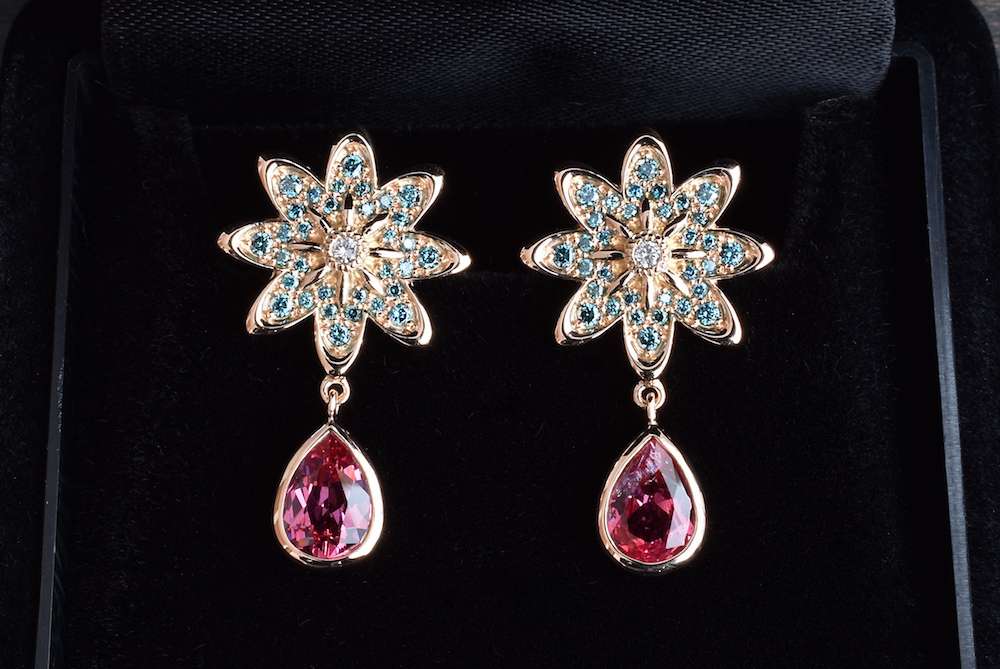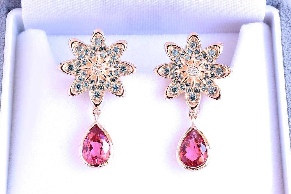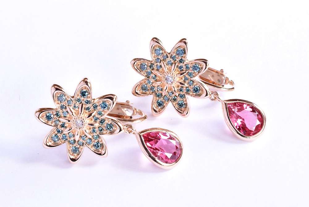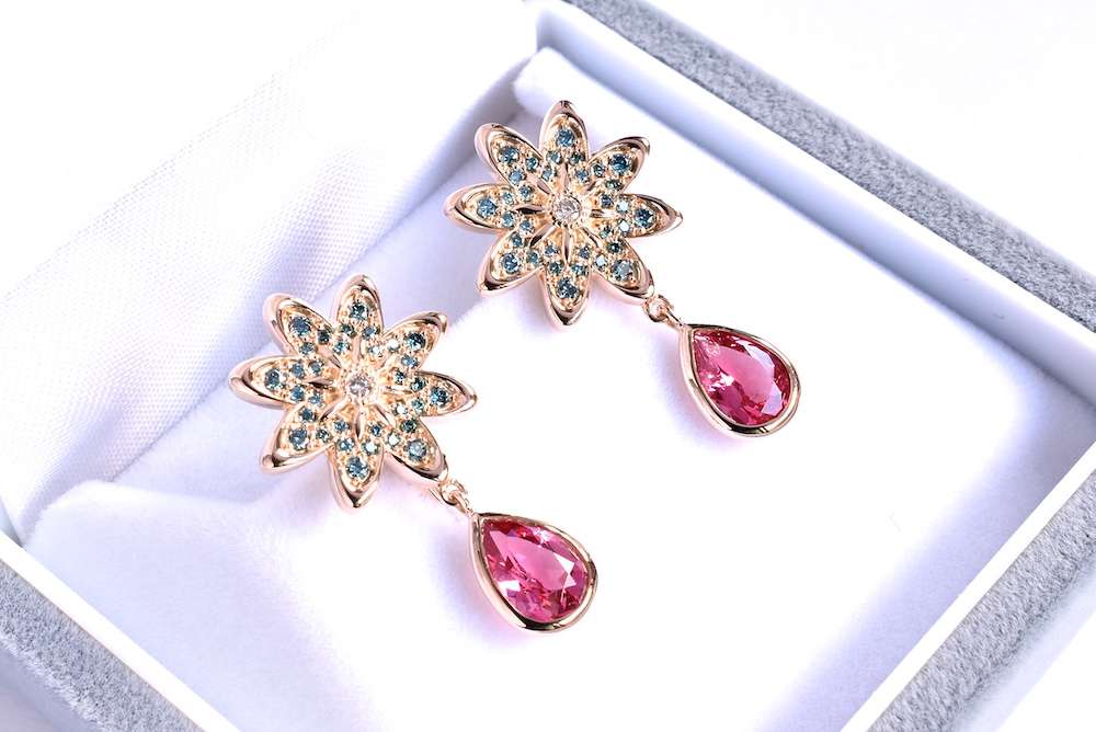 K18PG ブルーダイヤ ロゴイヤリング(ホットネオン ピンクスピネル)