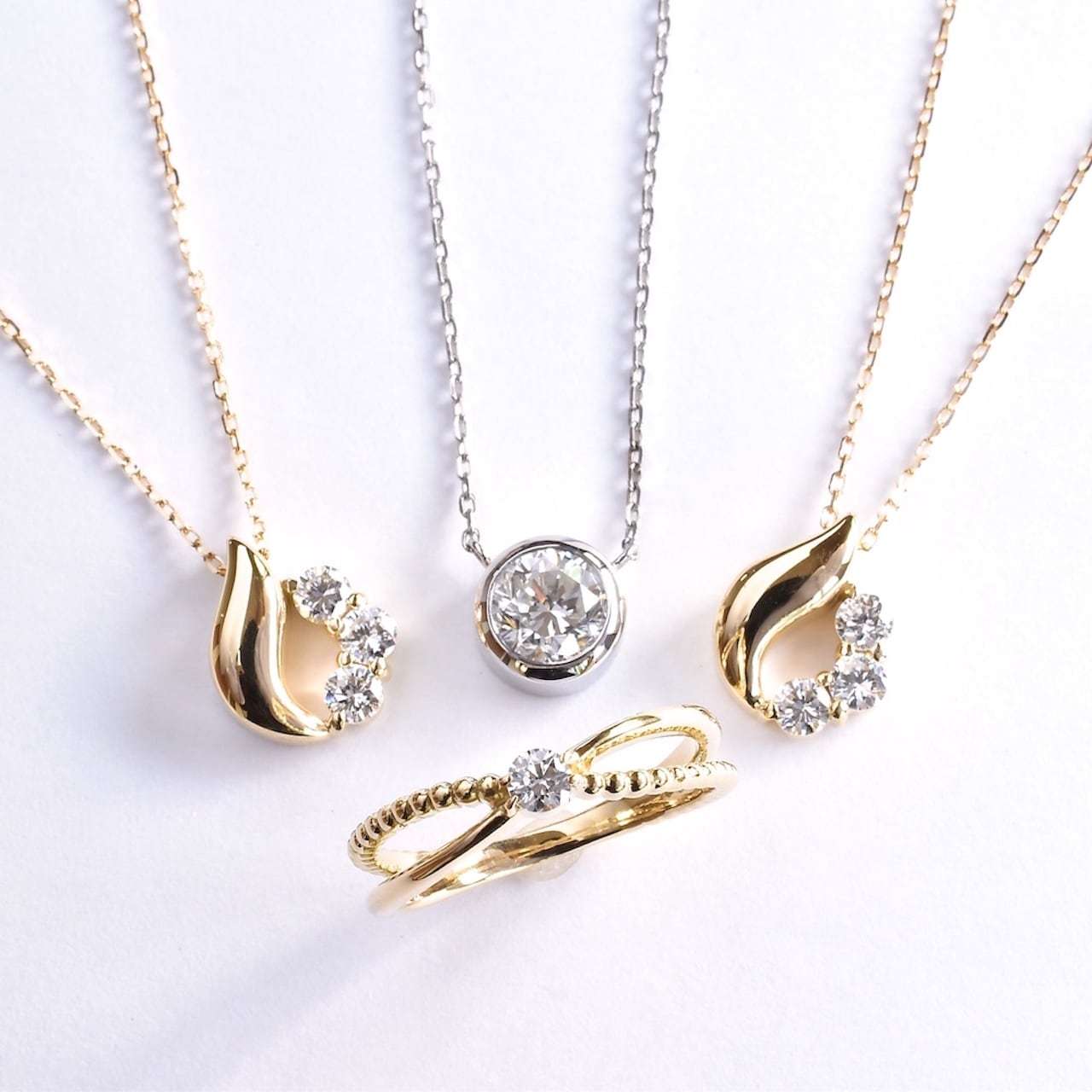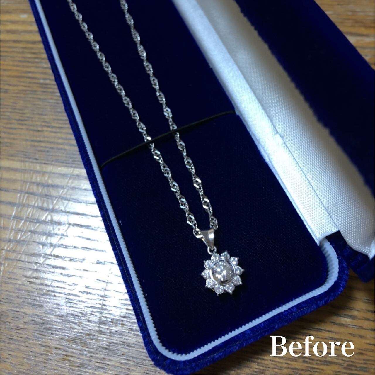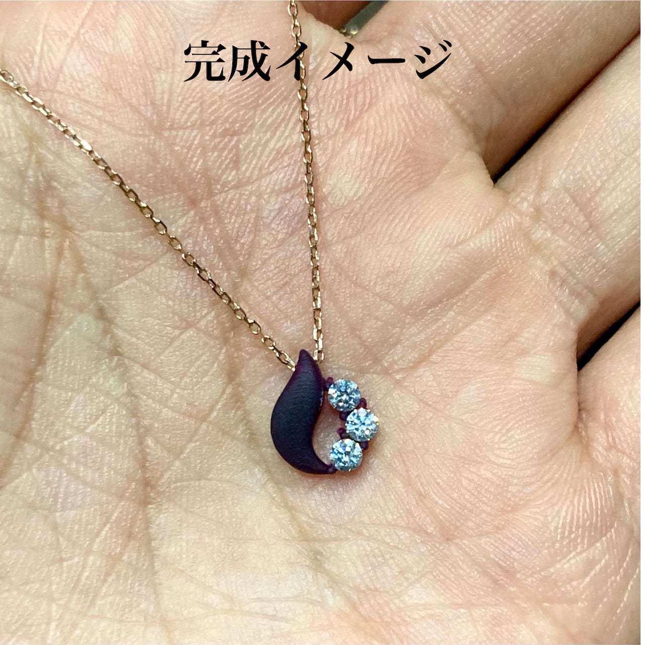 お祖母様のダイヤモンドペンダントを複数のジュエリーに作り替えたリメイク事例です。真ん中の大粒ダイヤは一粒ペンダントに。残りのメレダイヤはリングとペンダントにそれぞれ分配して製作させていただきました。元のジュエリーはプラチナですが、ゴールドで新しく作り替える事も可能です。今回の様なリメイク事例は初めてだったのですが、お話を聞くと、お祖母様の形見のペンダントを家族で分けて身につけたいとの事で、素敵なコンセプトだなぁ思いました。