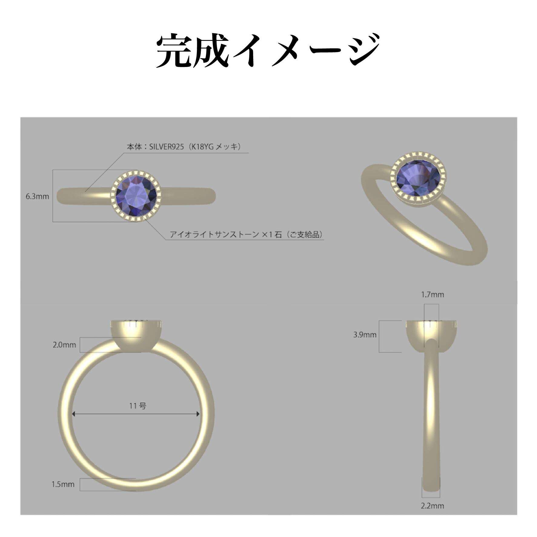 SILVER925 アイオライト サンストーン リング K18ゴールドメッキ