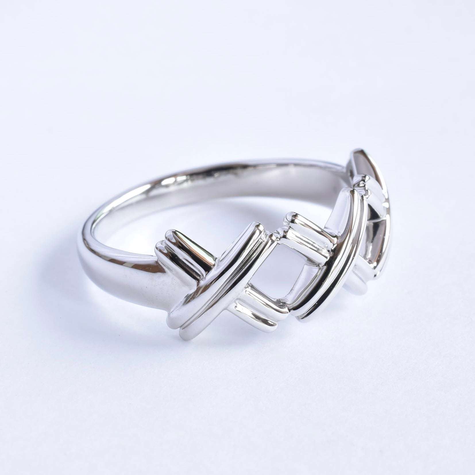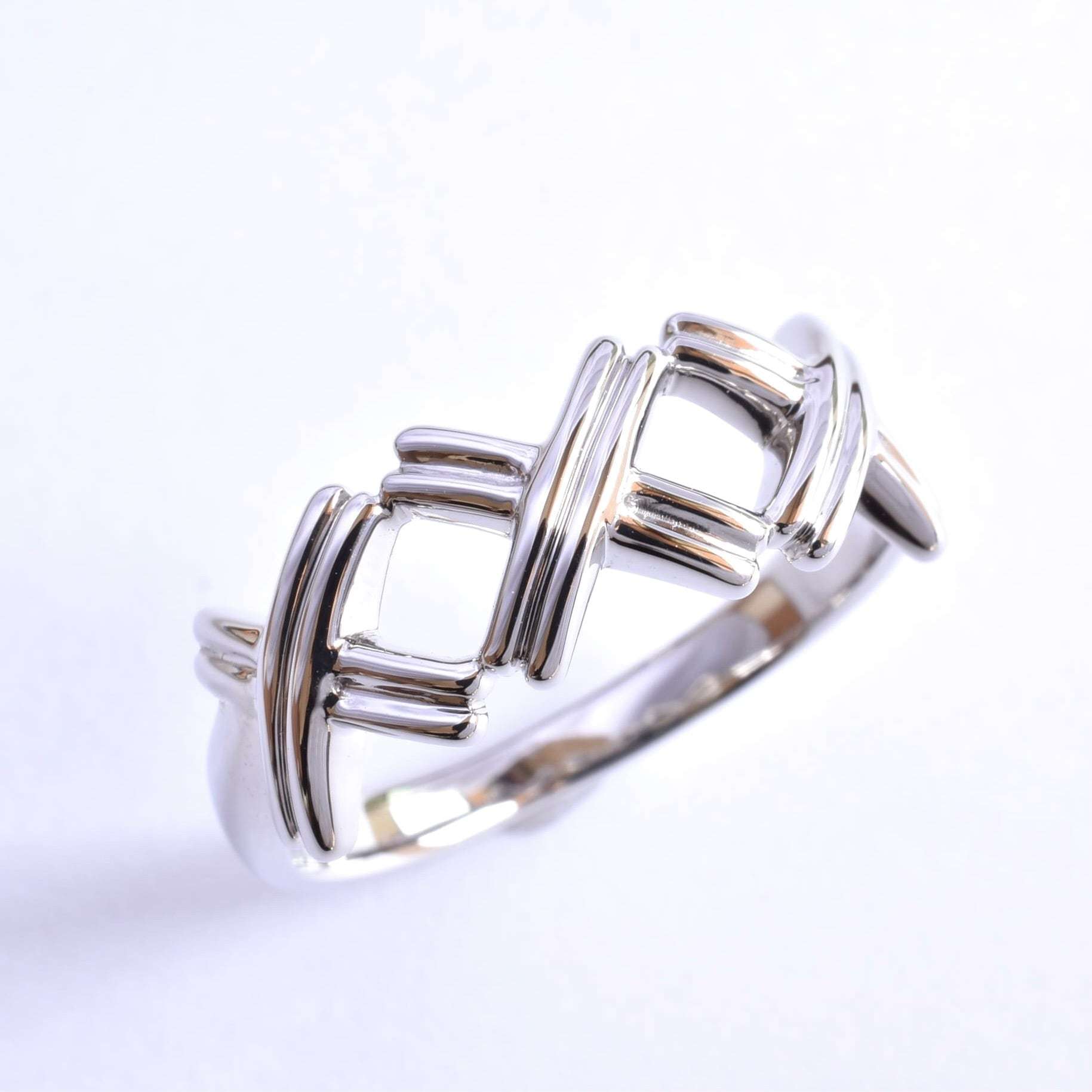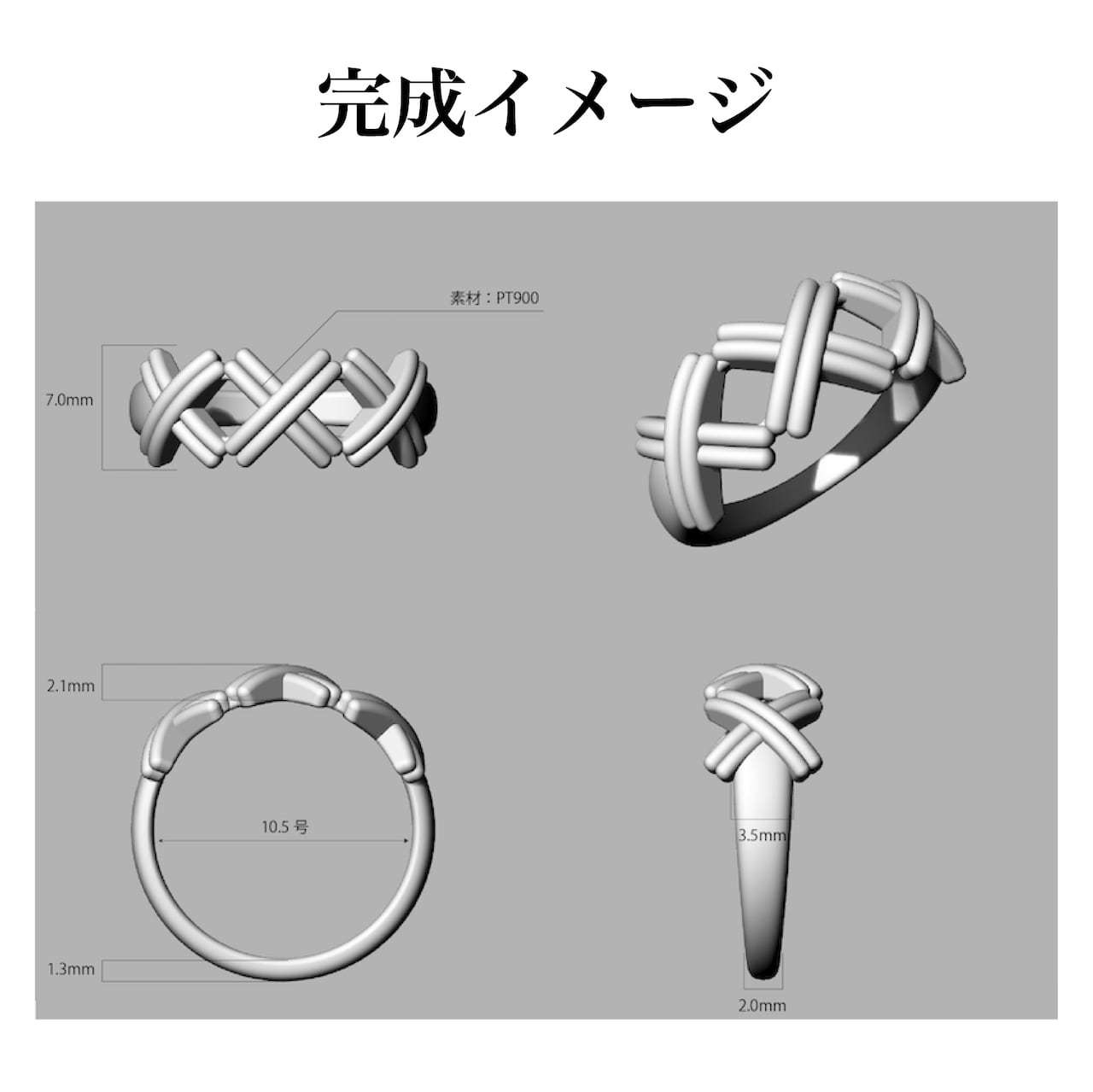 頂いたスケッチを元に製作したプラチナ製のクロスリングです。お客様の方で色々なクロスのパターンをご検討いただき、試行錯誤の上、考え抜かれたデザインを、全力で形にさせていただきました。こう言ったスケッチのご依頼はいつも素晴らしいジュエリーが誕生するので、やり甲斐があります。シンプルでありながら存在感と個性が感じられるデザインが秀逸だと思いました。