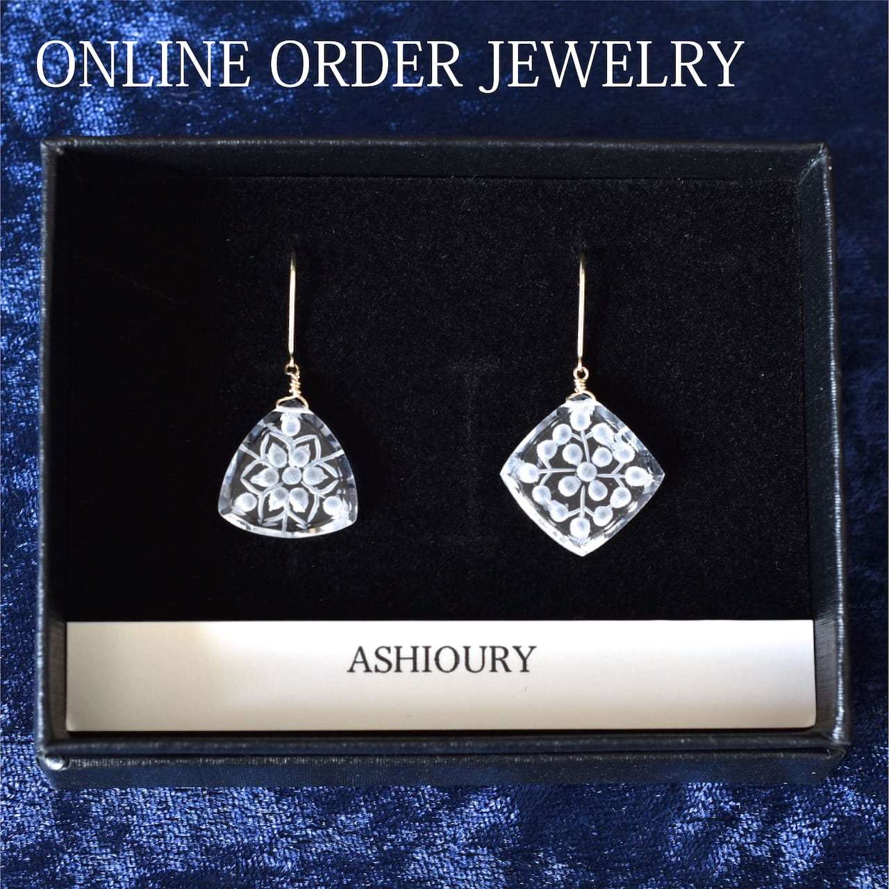 ご支給いただいたカービングクォーツをK10YGのピアスに加工した事例です。左右で柄が違うのがとても可愛いですね。弊社では、こう言ったメガネ留めの案件も承っております。
