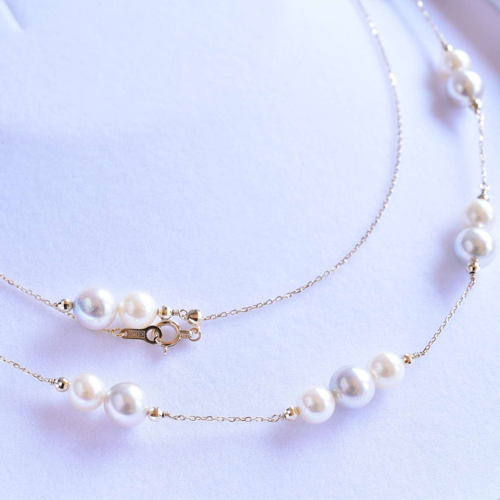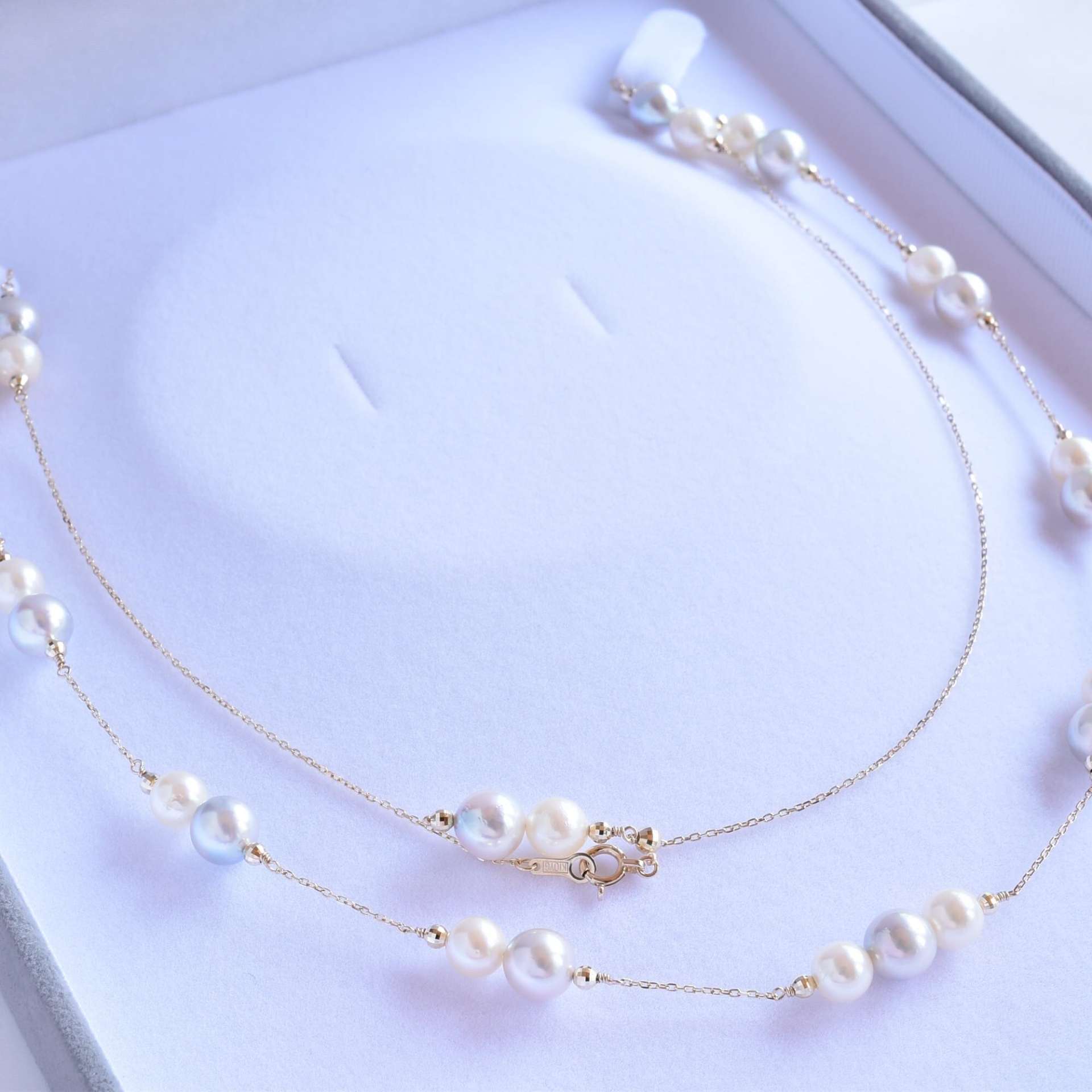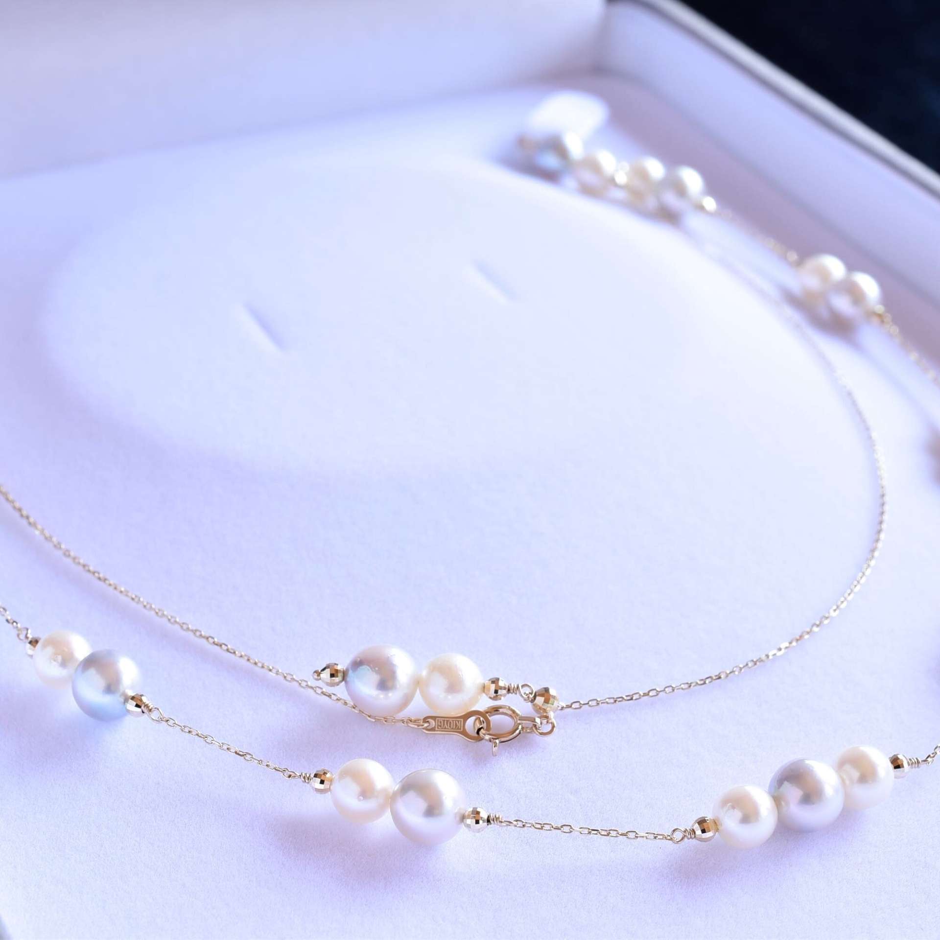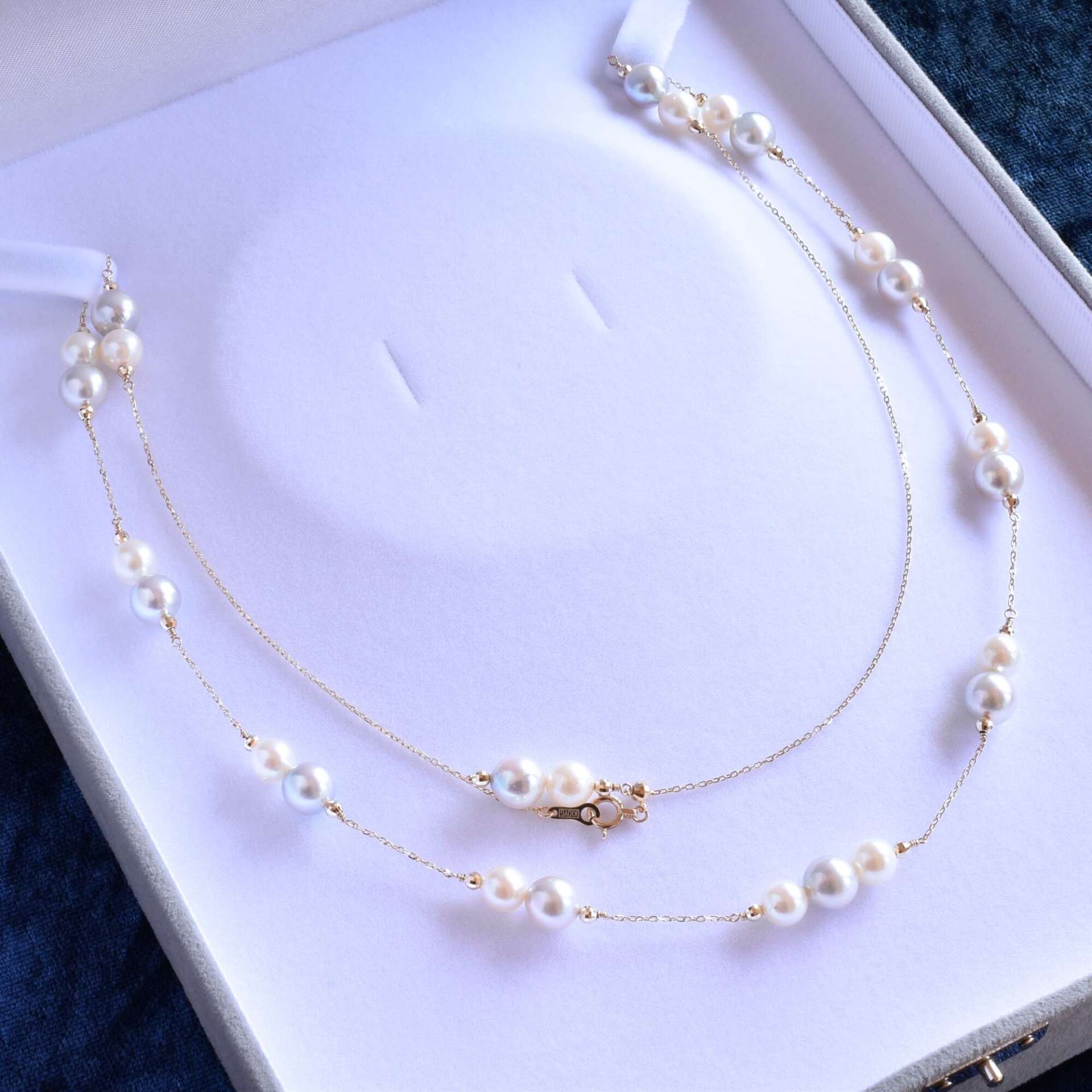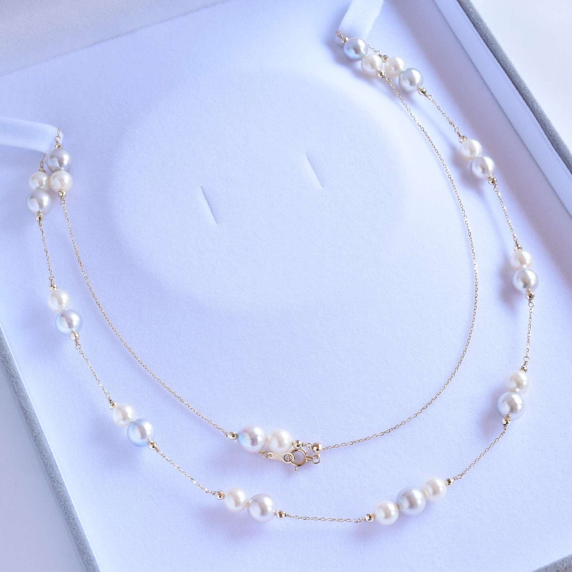 ⦅リメイク⦆K10YG あこやパール ステーションネックレス