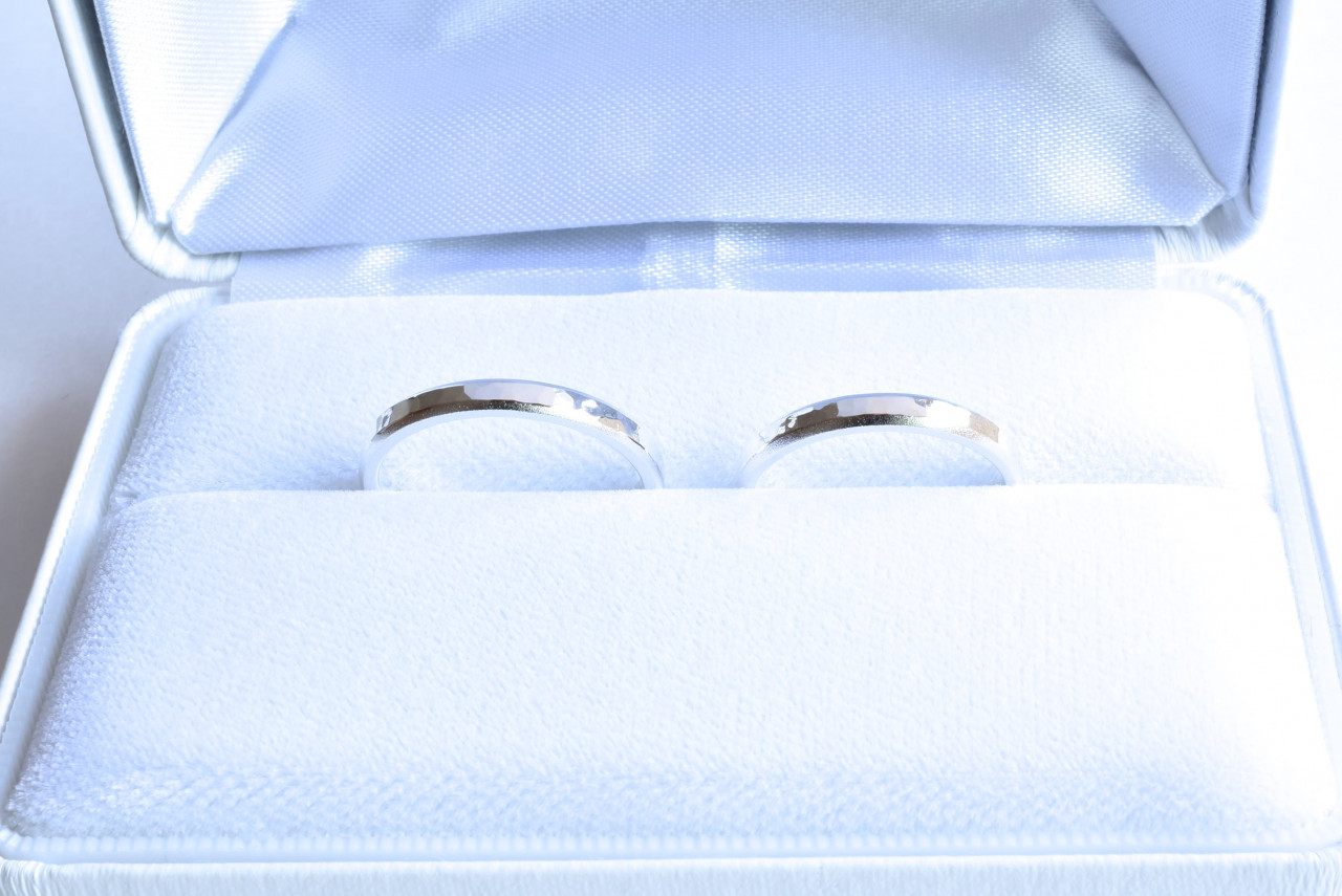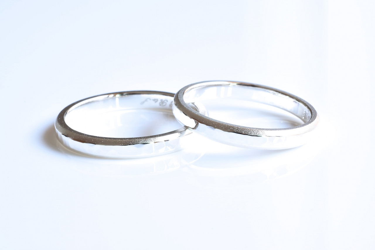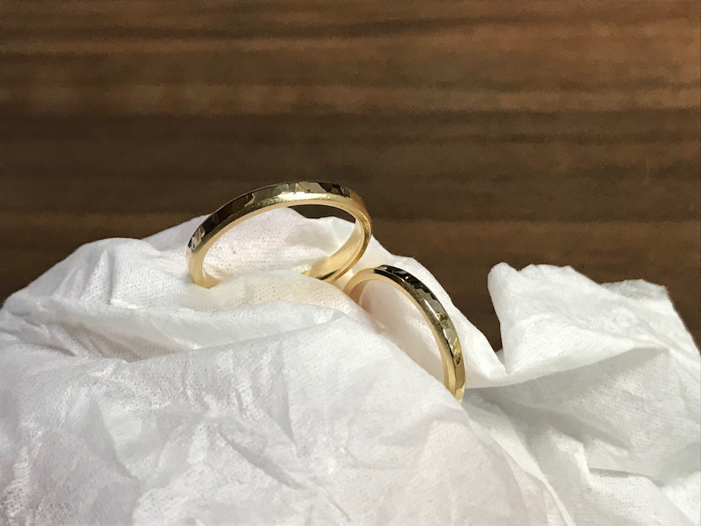K18YG 槌目マリッジリング (シルバーメッキ)