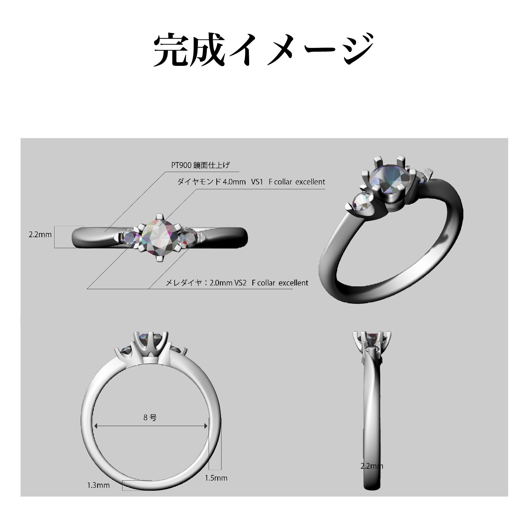 宝石:センターダイヤモンド(4.0㎜/VS1/Fcollar/excellent)メレーダイヤ2.0㎜(センター同等クラス)