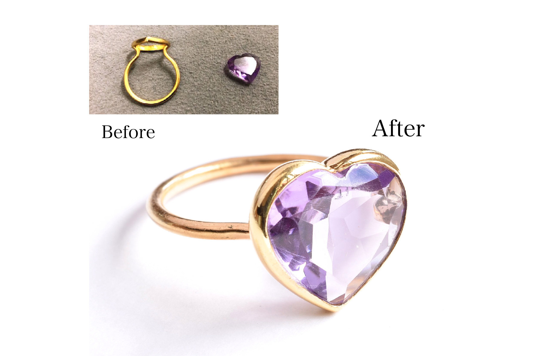 ハート型アメシストの留め直し/部分メッキ補修 | オーダーメイドギャラリー