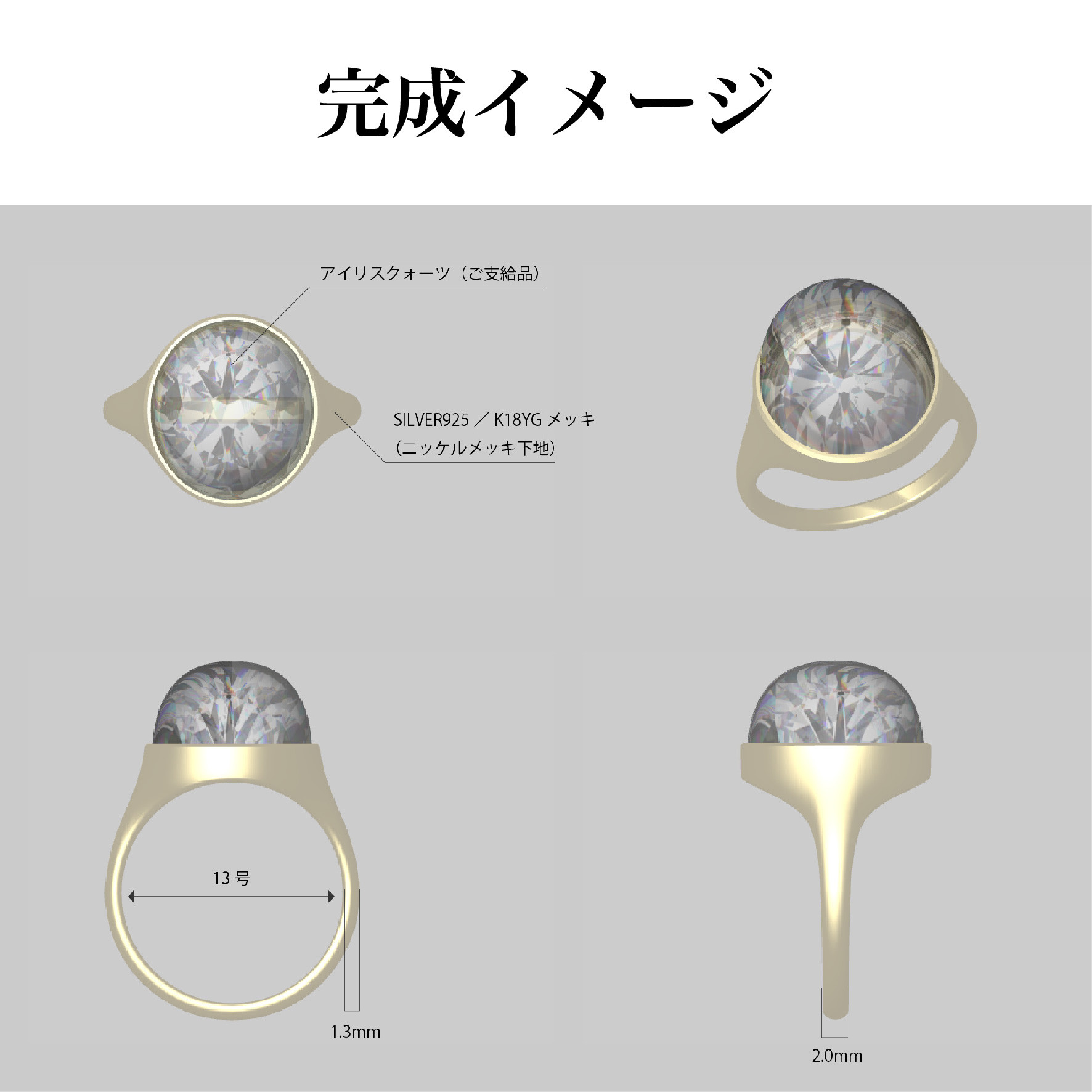 SILVER925 アイリスクォーツ覆輪リング(K18YGメッキ)