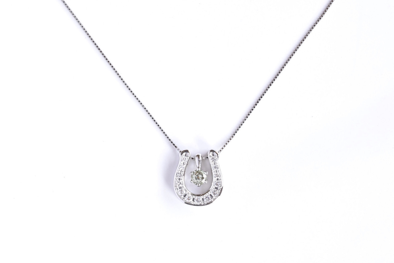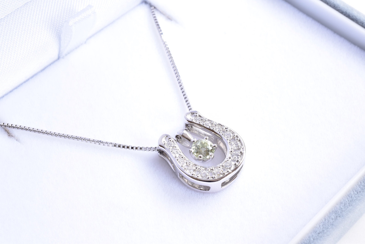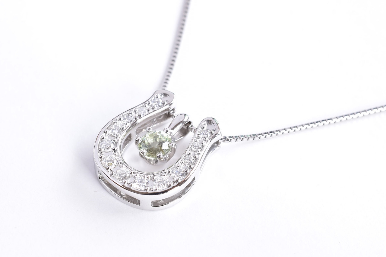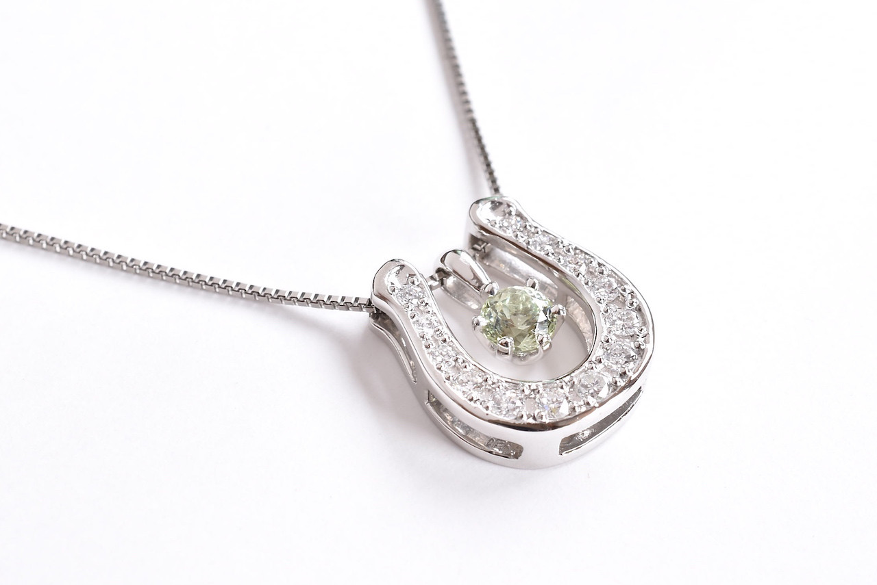 PT900 ダイヤモンド馬蹄ペンダント (ライムガーネット)